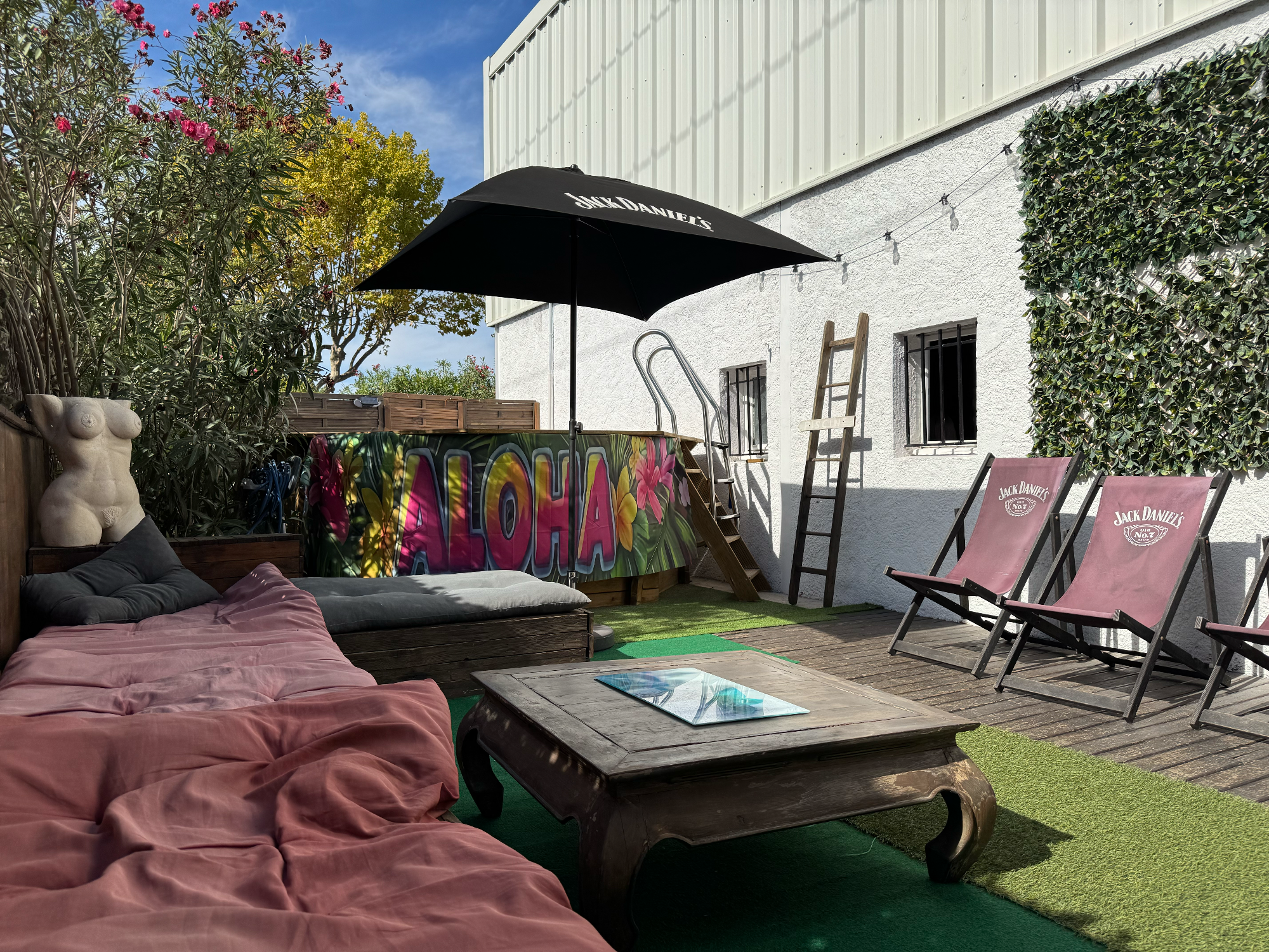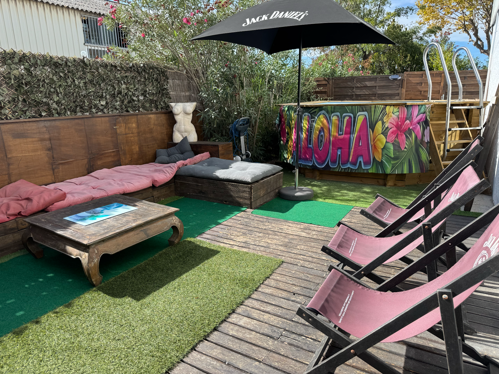 Aux beaux jours, notre jardin d’été extérieur vous invite à la liberté : piscine rafraîchissante, barbecue gourmand, lits extérieurs et coin chill pour prolonger la volupté sous les étoiles.