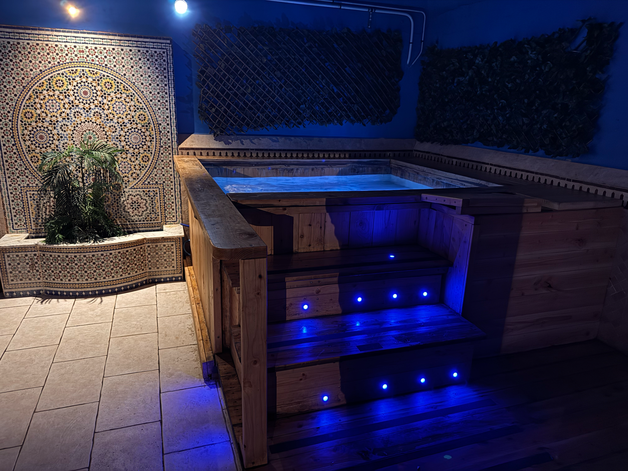 Entre bar élégant, coins câlins, jacuzzi bouillonnant, hammam oriental, sauna, et jardin d’été avec piscine, laissez-vous séduire par une ambiance chic et sensuelle.